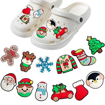 Weihnachten PVC Weich plastik Schuh dekorationen DIY Abnehmbare Cartoon Loch Blume Gummi Material Zubehör Kleber